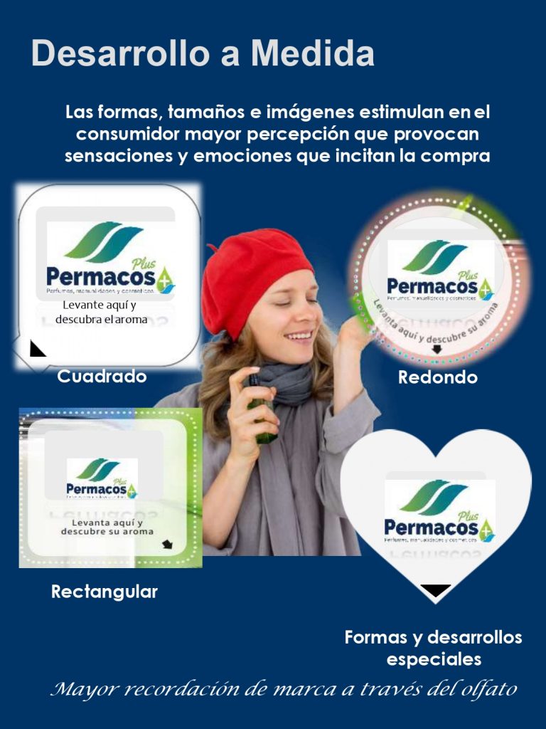 Tiene el propósito de estimular la venta de sus productos fraganciados o con aromas, mediante nuestros probadores de fragancias o stikers de aromas. Buscamos activar el sentido del olfato y generar una recordación de marca o ya sea en este caso del perfume o aroma que mas desees.